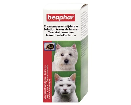 | Kenmerk | Verwijderaar bevochtigen en hiermee de betraande huid rond het oog 1-2 maal per week reinigen. Met een droog watje nadeppen. Sterk verkleurde ooghoeken / verkleurde vachtdelen dagelijks behandelen tot de vlekken verdwenen zijn. Droog en buiten bereik van kinderen bewaren. |