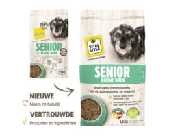 | Samenstelling | Granen (oa 10% hele maïs), vlees en dierlijke bijproducten (oa 8% gevogelte), oliën en vetten (oa 0,23% visolie) plantaardige bijproducten (oa 4% bietenpulp), mineralen, plantaardige eiwitextracten, groenten (oa 4% wortelen in de oranje brokken en 4% bonen in de groene brokken) |