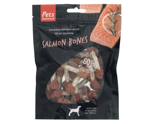 De zalmkluifjes zijn geschikt voor alle soorten honden. Het product beschikt tevens over een handige hersluitbare strip. Hierdoor blijven de hondensnacks lang goed.